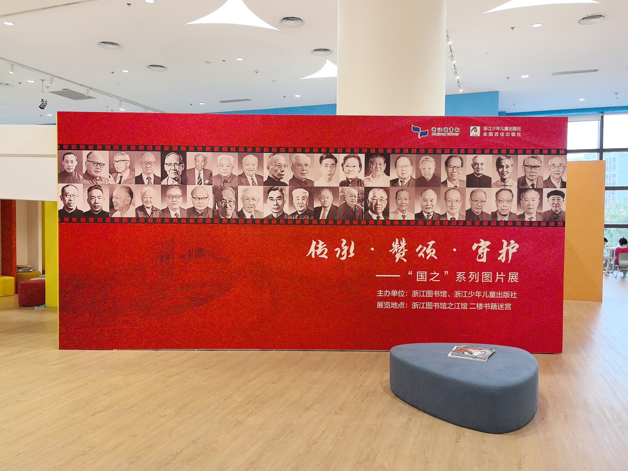 浙江图书馆与浙江少年儿童出版社联合主办“传承·赞颂·守护——‘国之’系列图片展”近日正式向广大读者开放。本次展览涵盖《国之脊梁——中国院士的科学人生百年》《国之骄傲——我为祖国点个赞》《国之海防——铸就蓝色长城》《国之英模——感动中国的功勋人物》及《了不起的中国力量——漫画国之重器》五部精品图书的内容,全景呈现中华文化的深厚底蕴和当代中国的崭新篇章。从科学巨匠的睿智人生,到革命英雄与时代功勋的磅礴伟力,每一段中国故事都凝聚着生生不息的民族精神。