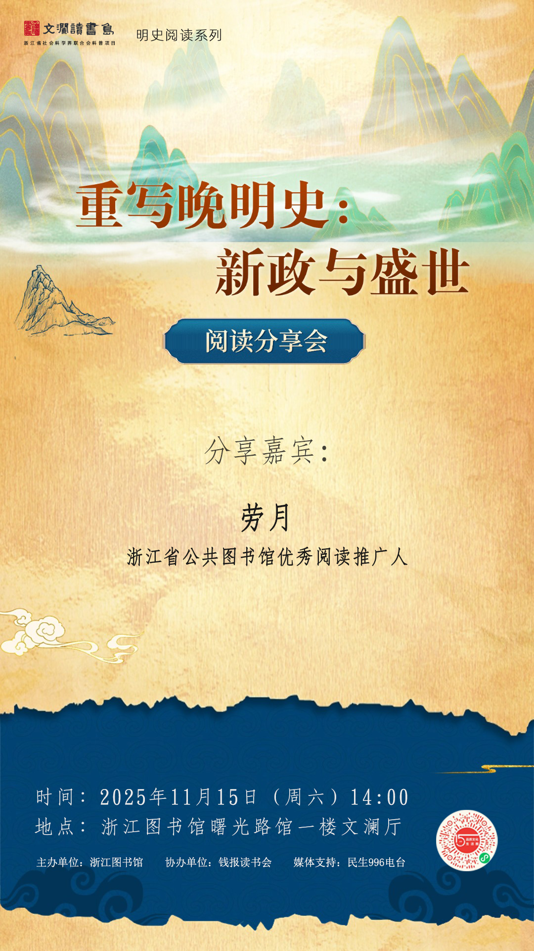 【文澜读书岛】明史阅读系列,今年启动以来,已共读过《朱元璋传》《万历十五年》,本周六,劳月将带领读者转换视角,共读《重写晚明史:新政与盛世》,借历史学家樊树志的洞见,与黄仁宇的“大历史观”进行对比,重新解读万历朝的历史轨迹。